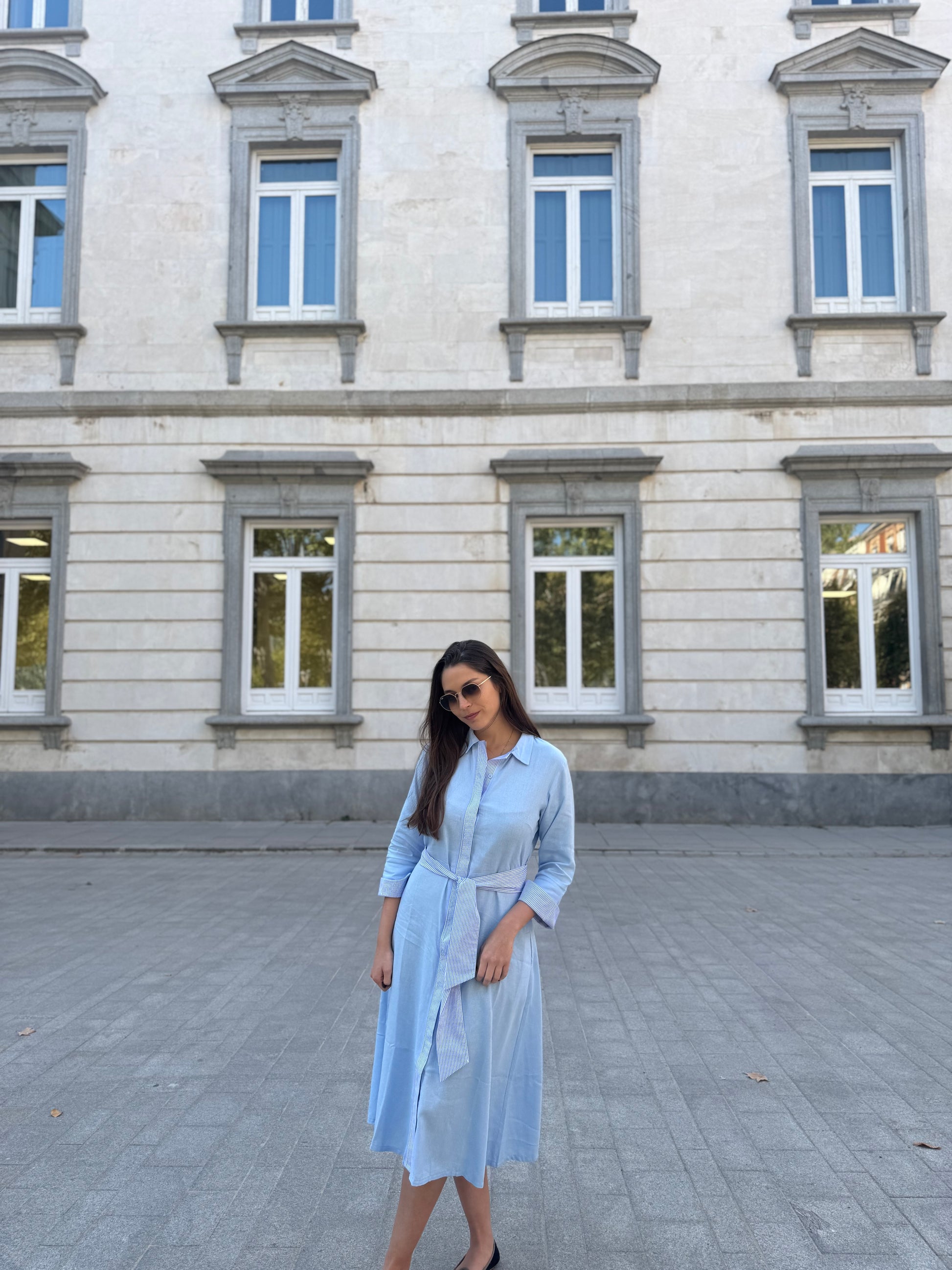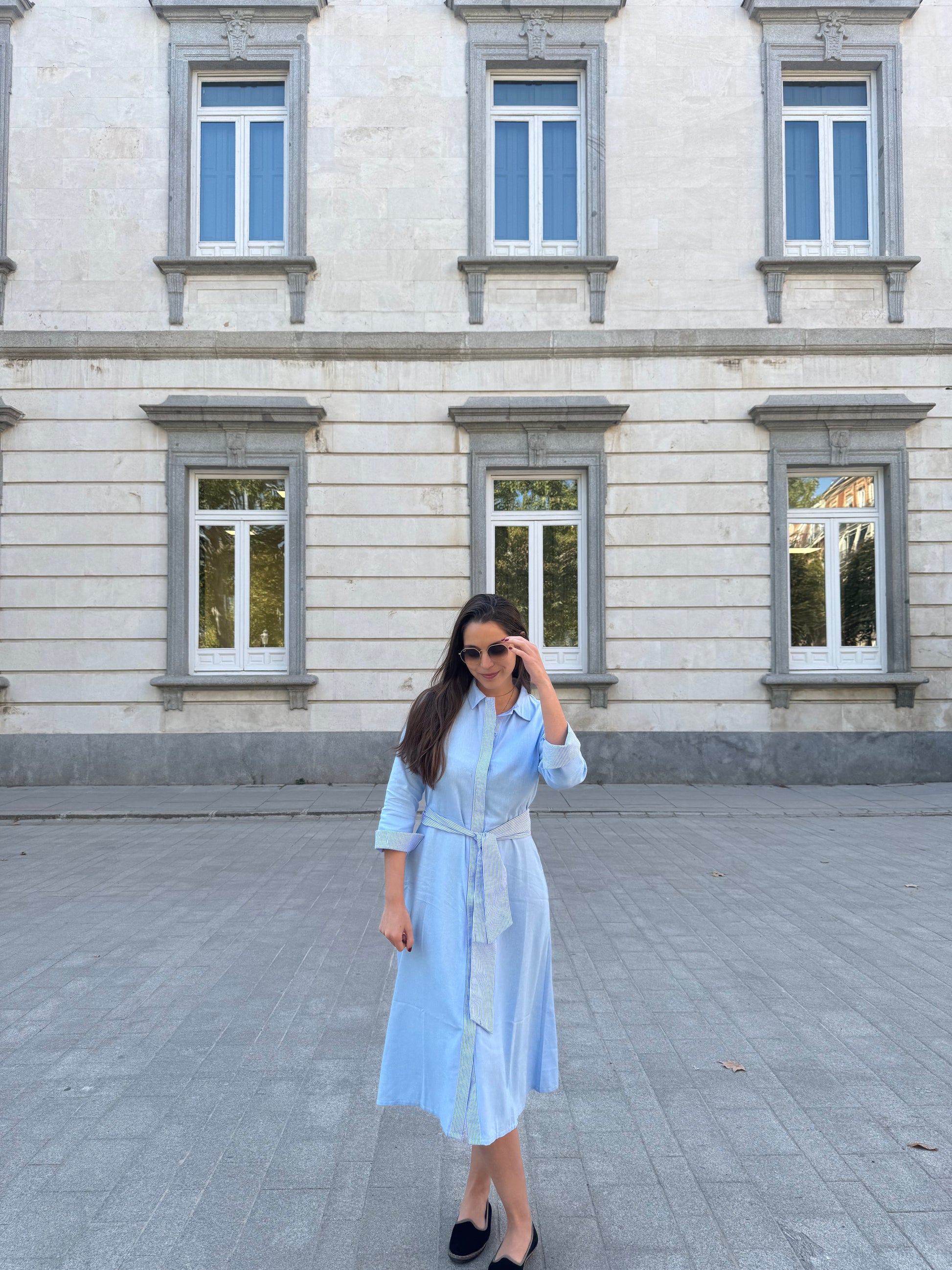 Camisero de lino y algodón con bolsillos y cinturón para entallar la cintura.