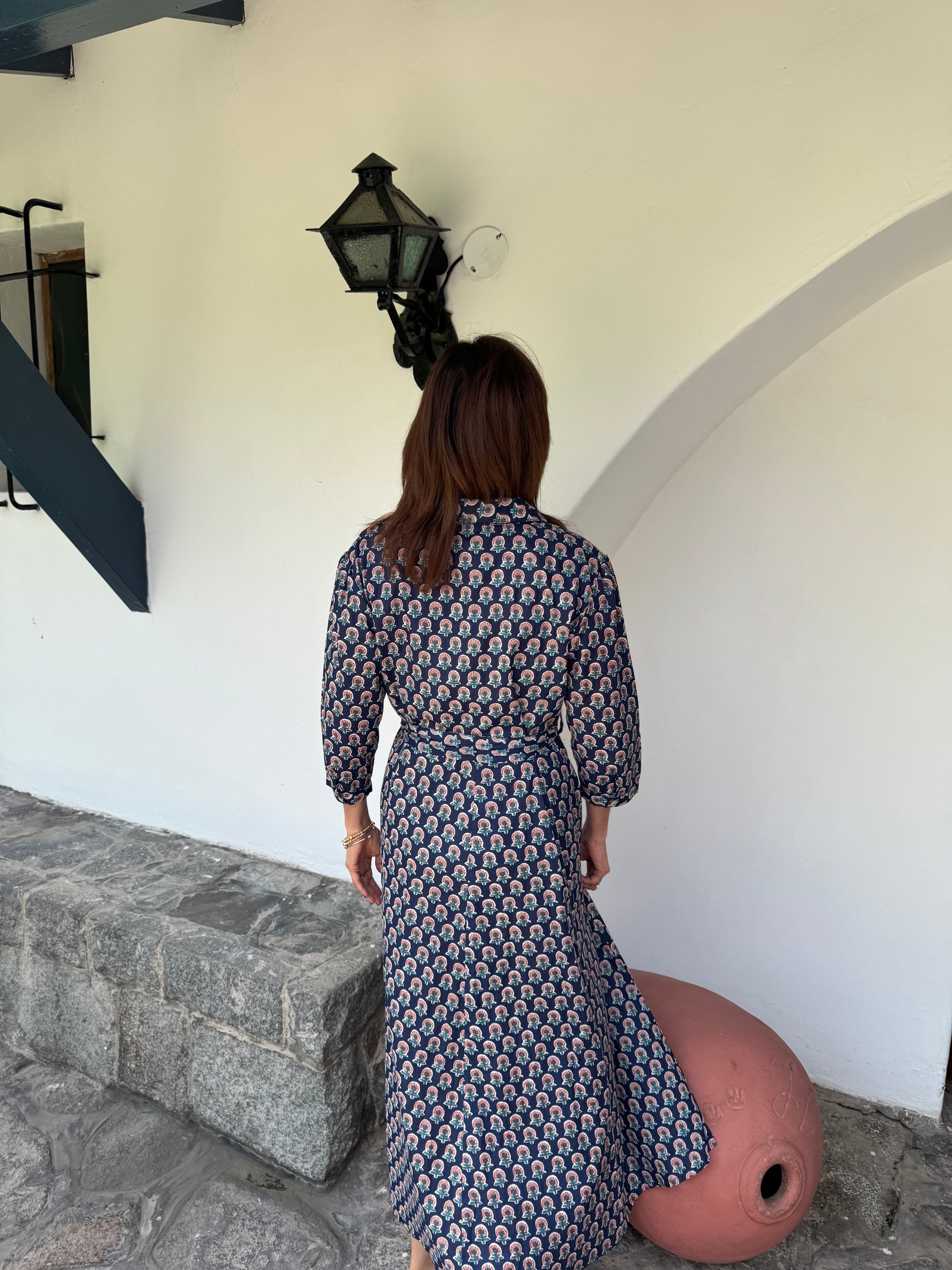 Un básico con personalidad. Confeccionado en algodón ligero, este camisero cuenta con mangas 3/4 y un lazo ajustable en la cintura que realza la silueta de forma versátil y femenina. Cada pieza ha sido elaborada con la técnica artesanal del block print, lo que garantiza estampados únicos e irrepetibles. Importado desde España, es una prenda especial que combina comodidad, frescura y un diseño exclusivo.
